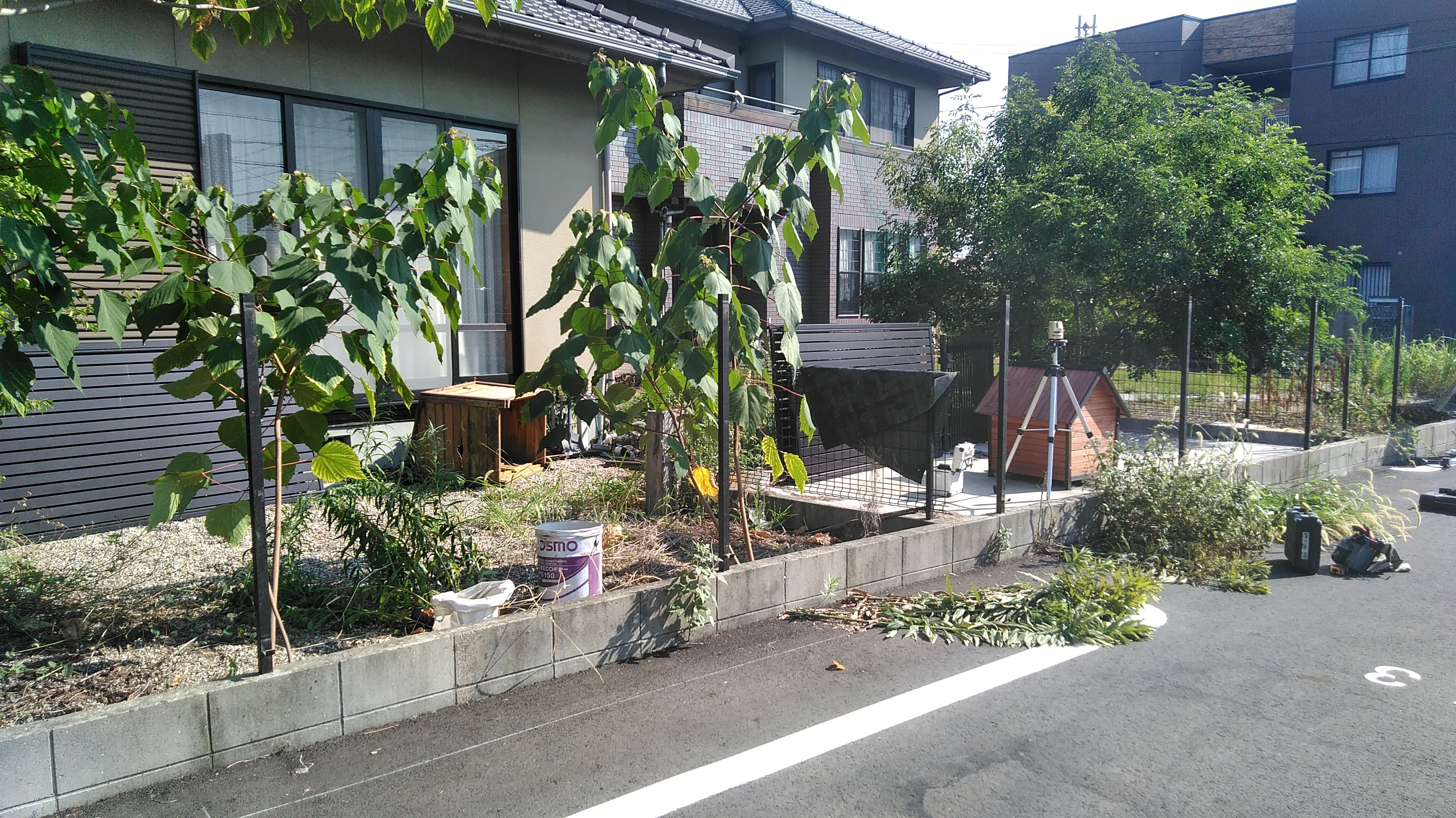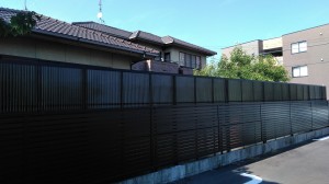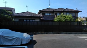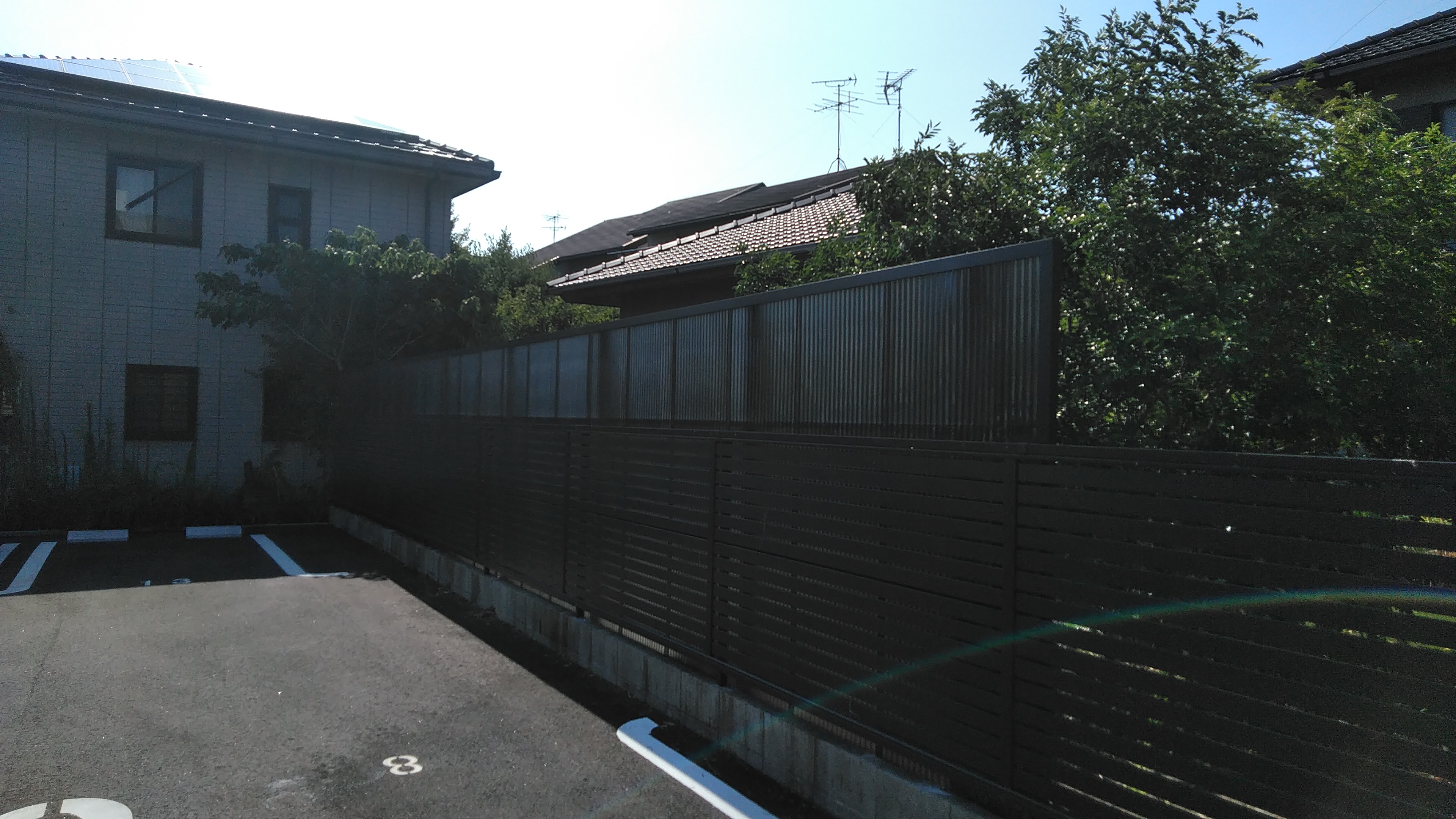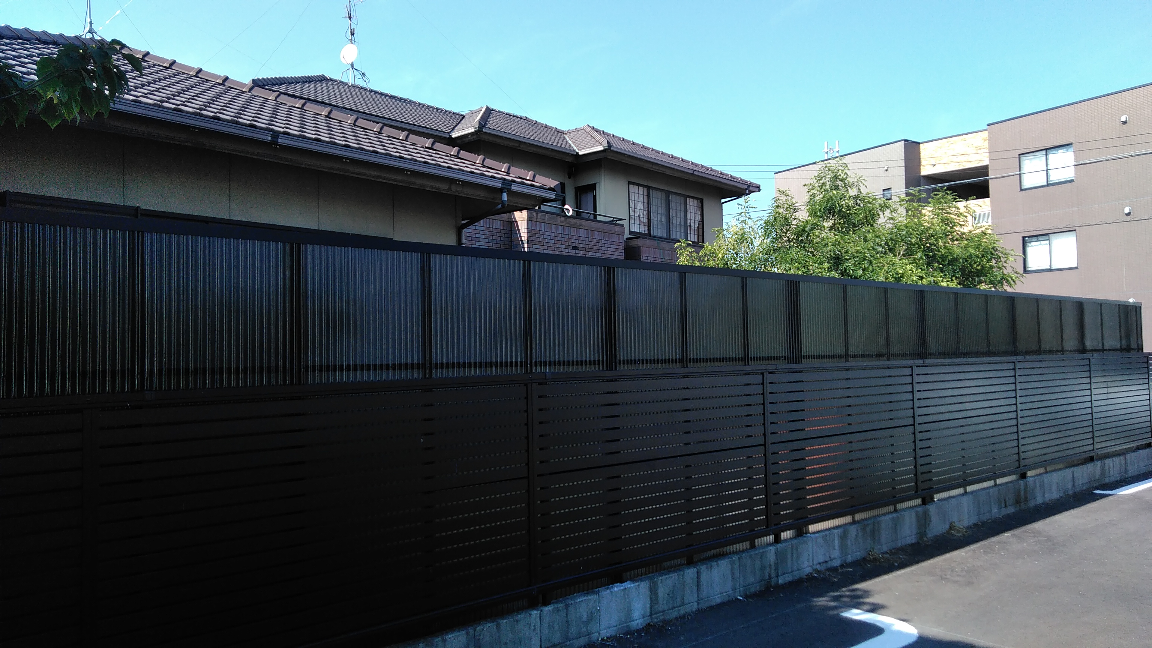 こんにちは大久保です!!毎日暑い日が続きますね!!今週はエクステリア工事デス目隠し(側面張り)どーんと13M風にも負けない上部に取り付けました。枠材70角柱/どうぶち60角4段波板ポリカーポネットマッドブラック色完全に目隠しになりました/このような規格外でも形になる自由設計で加工できます。ご参考までに