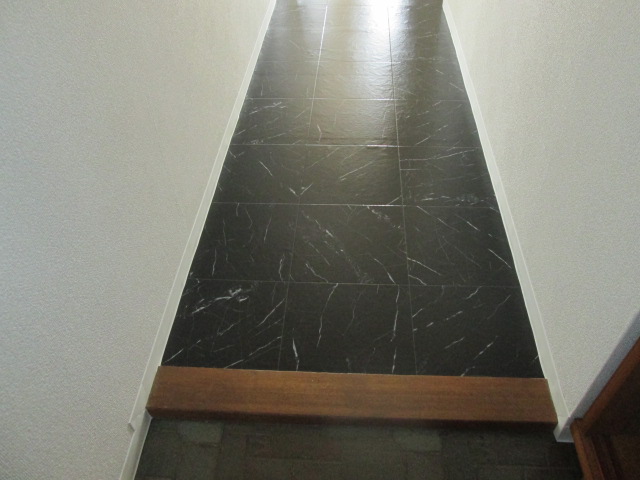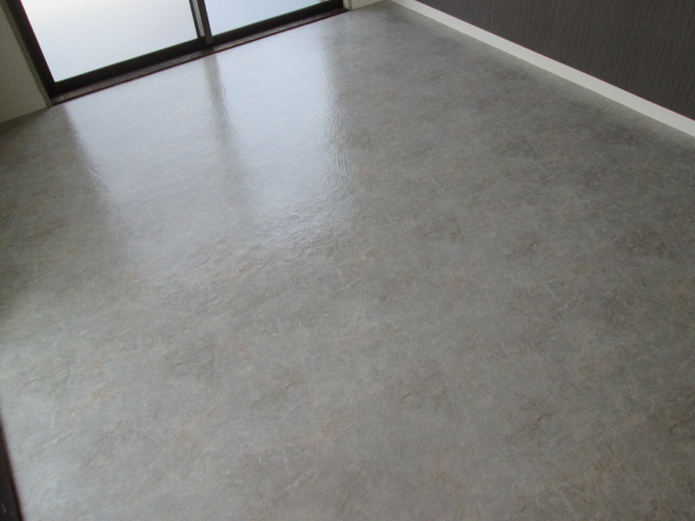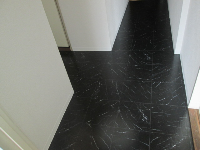 床のクッションフロアも木目ではなくストーン調で施工いたしました