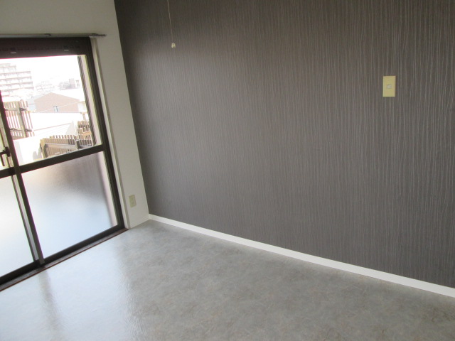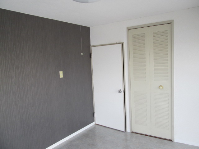 壁紙はメインは白系で壁の1面だけダーク系の壁紙をアクセントで施工してます