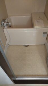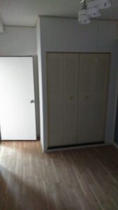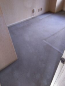 上の写真のキッチン室以外の1室はカーペットフロアからクッションフロア張りへと改修して納めました。