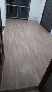 左の2枚の写真に関しましては畳であった床材を床上げの造作工事を行いましてクッションフロア仕上にて改修して納めました。
