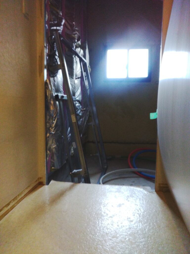 まず工事前の写真と本日撤去作業が終わり給排水給湯管追炊き管換気用アルミパイプなどの仕込みが終わり