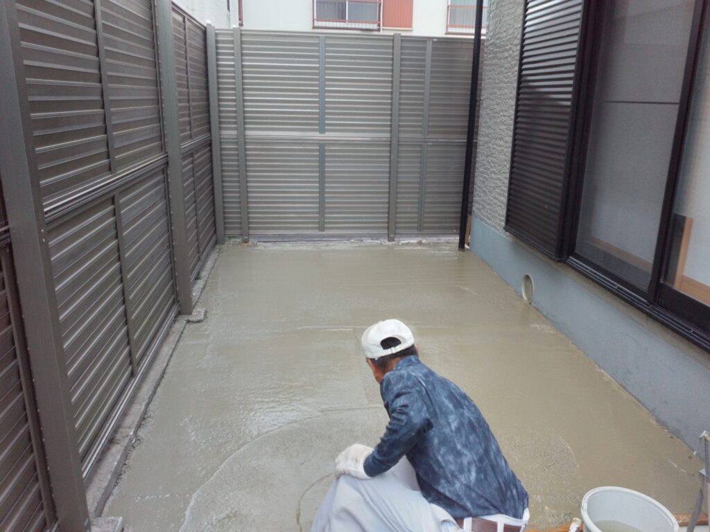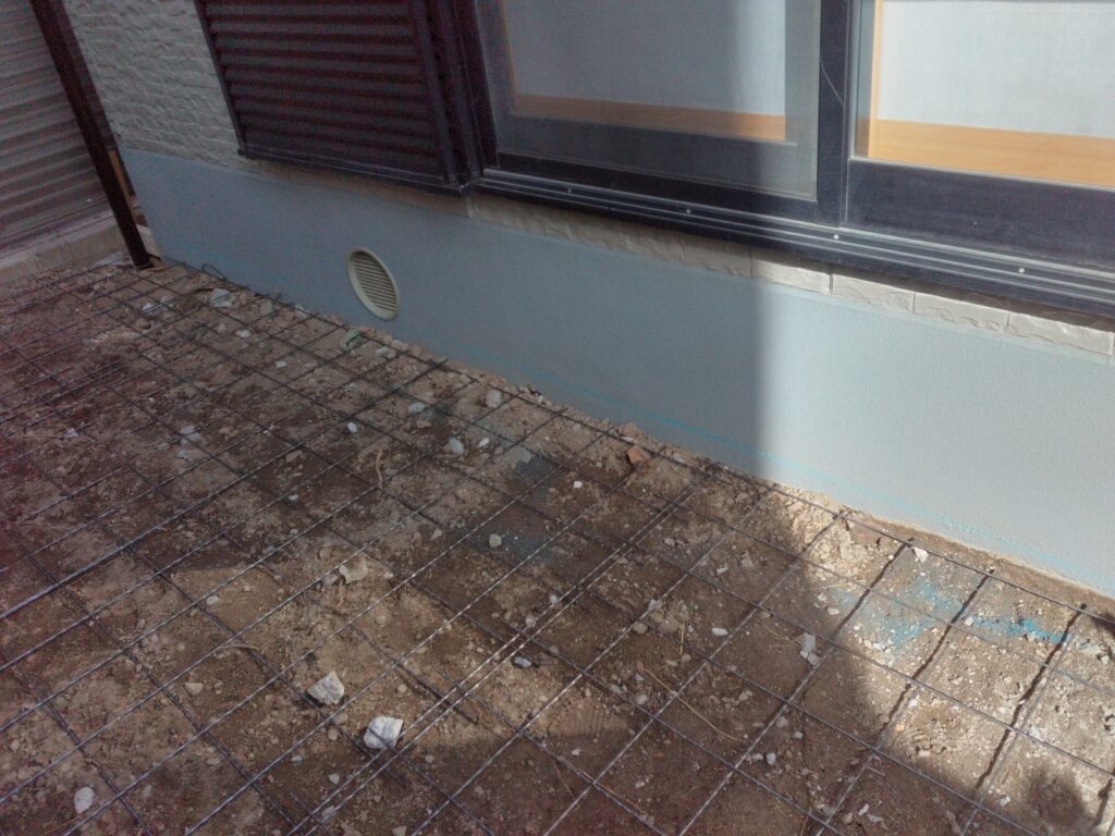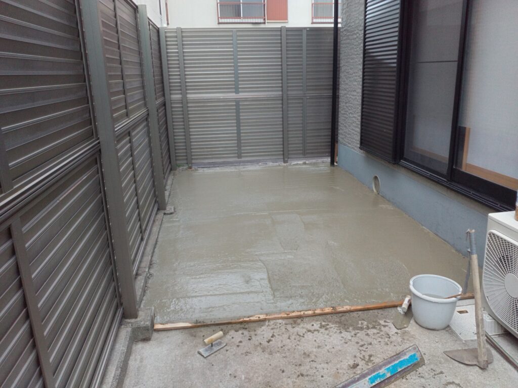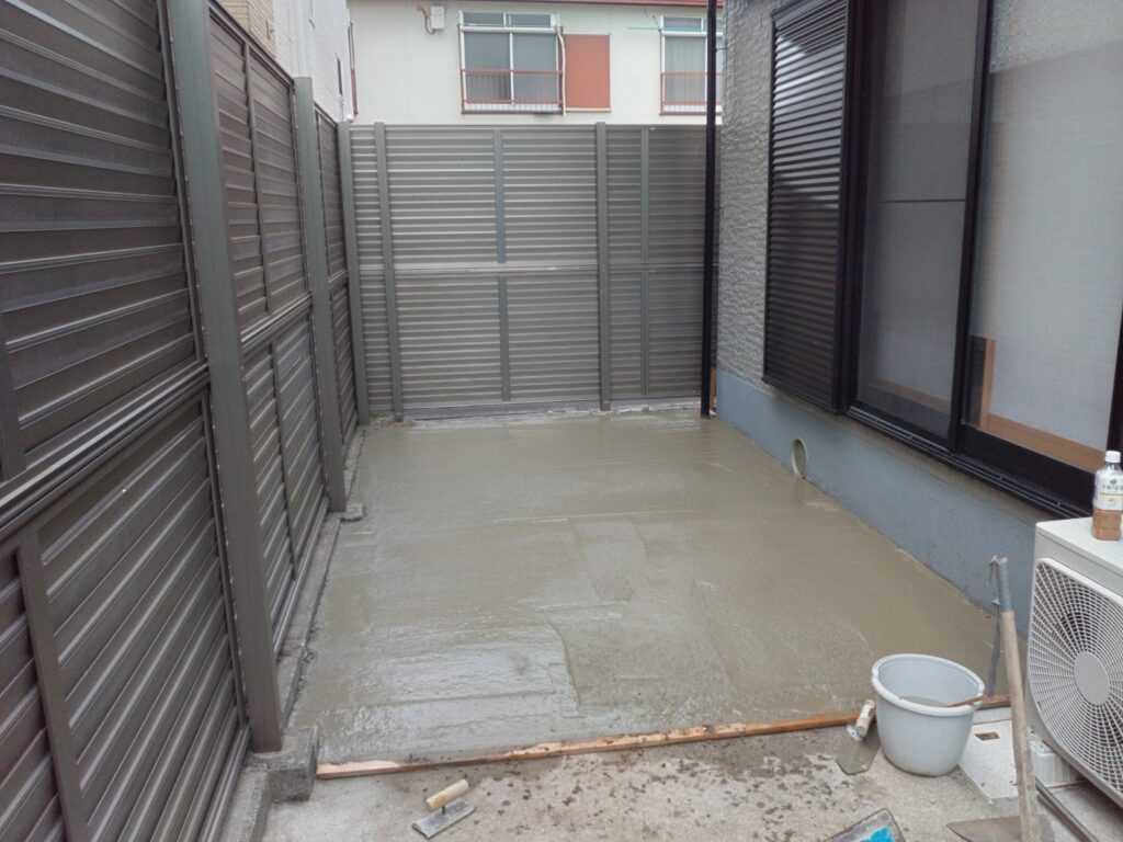 以前こちらは土植栽などの植え込みがありました可能な限り根っこまで削除し最後モルタル打ちを施しました