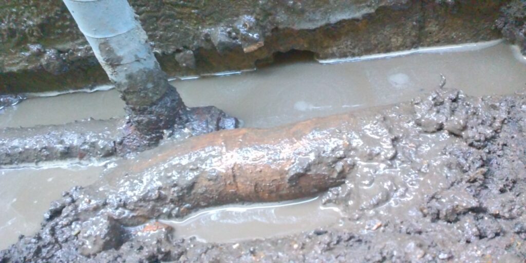 配管が根子の下に圧迫されていました