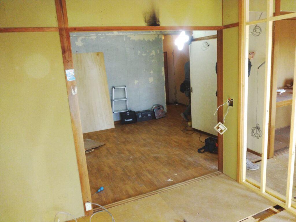 昨日は撤去作業が大方終了し本日から内装工事初めに既設和室より洋間2部屋に施し