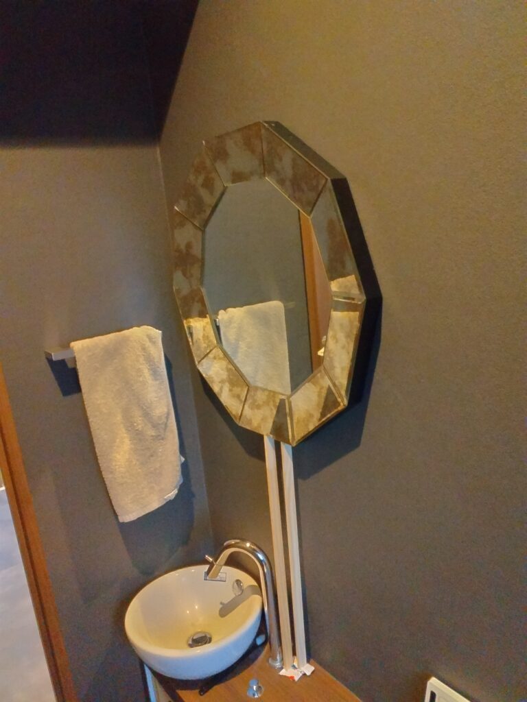 手洗いには大きめの鏡を取り付けました