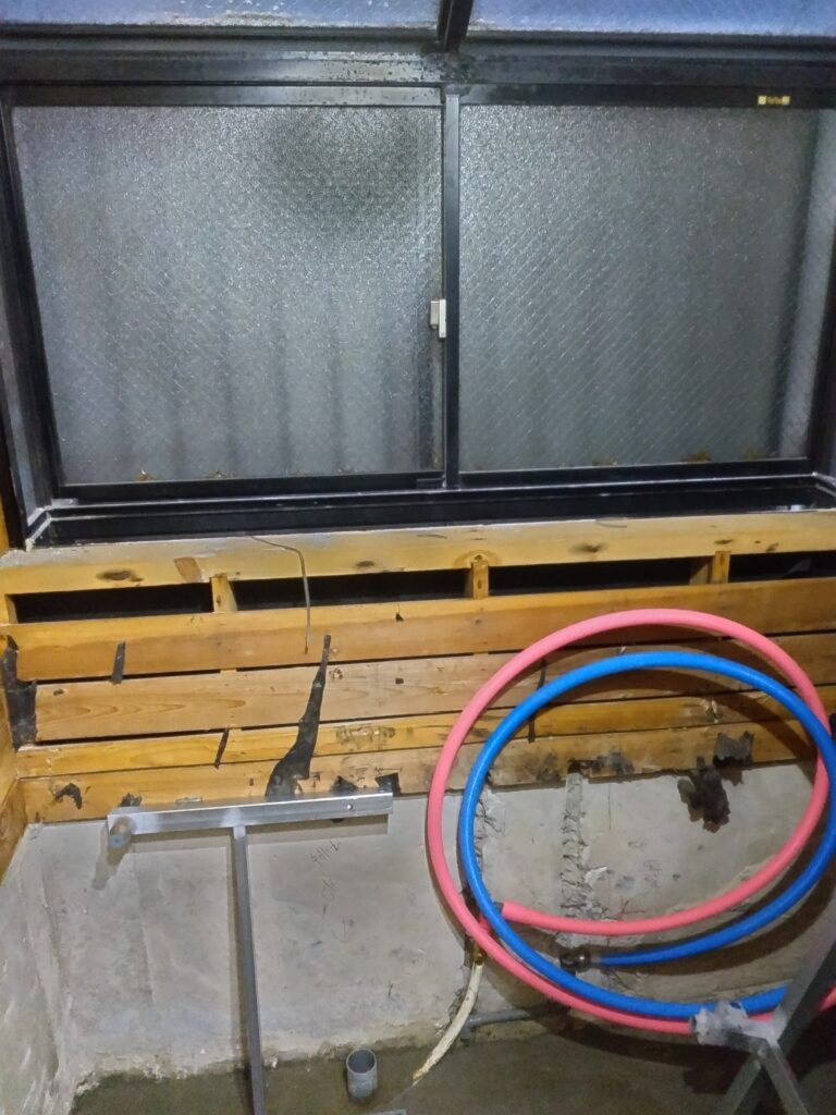 昨日在来ハツリ浴室内撤去を行い土間打ちを施し本日ユニットの取り付けです!!!!!