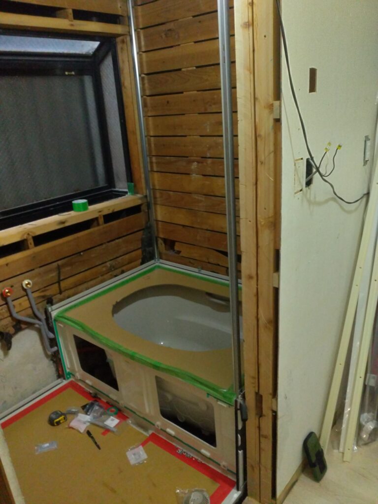 今日は昨日に引き続きユニットバス取り付けの模様です
