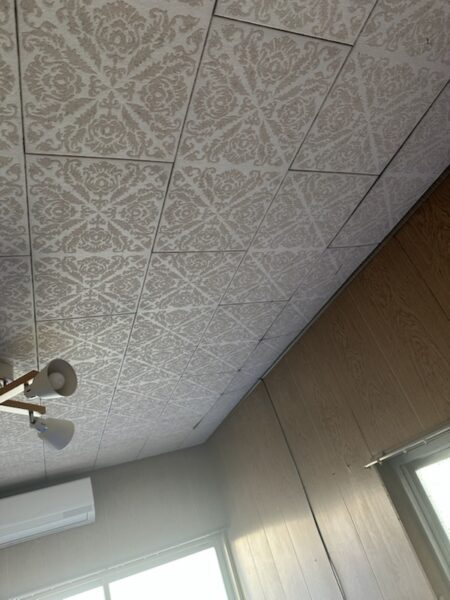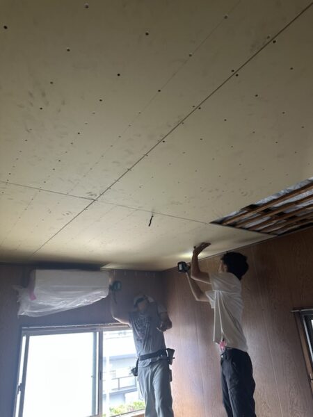 雨漏りで天井が膨張して不具合になってました、綺麗にして欲しいとの工事ご依頼