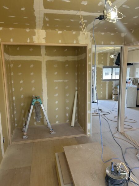 工事は進んでボード梁クロスの下所の模様です