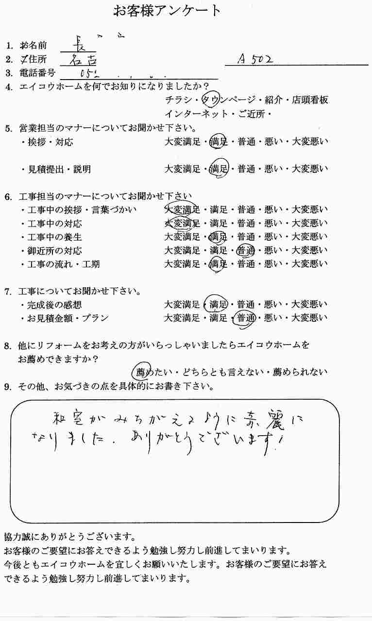 マンションリフォーム 和室お客様の声 最近の投稿 リフォーム名古屋エイコウホーム千種店賃貸リフォーム2DKルーム 外壁塗装北区 リフォーム名古屋ユニットバスエイコウホーム千種店 リフォーム名古屋エイコウホーム千種店賃貸フルリフォーム キツチンリフォーム北区 カテゴリーカテゴリー カテゴリーを選択 排水管工事 (24) ユニットバス (32) 和室を洋室に改装 (7) 外壁塗装リフォーム名古屋 (40) 北区 (31) 三点ユニットを分離リフォーム (3) 雨漏りリフォーム工事 (42) 西区 (5) 建具のリフォーム (3) 屋根のリフォーム (30) 守山区 (31) 収納 クローゼット (3) エイコウホームの日常 (14) 千種区 (3) フェンス工事 (5) 外壁リフォーム (3) 配管つまり抜き工事 (4) 軒天修理 (2) 天井リフォーム (12) クロス貼り工事 (9) シロアリ対策 (3) 網戸 (2) フロアタイル工事 (3) 激安リフォーム (2) キッチン (34) クッションフロア工事 (6) サッシ窓 (4) キツチンリフォーム名古屋 (131) 和室→洋室 リフォーム (16) リフォーム (27) サイデイング (3) 天井のリフォーム (1) 浴室リフォーム (135) 塗装工事 (12) 水漏れ修理 (6) 前田 施工事例集 (48) シャッター 雨戸 (2) 床直し工事 (62) エコ内窓インプラス (4) まるで新陳君 戸建て編 (7) 解体工事 (1) 防水リフォーム (45) まるで新築くん(マンション編) (5) 賃貸リフォーム (20) コーキング打替えリフォーム (21) 防犯対策リフォーム (2) フルリフォーム (2) 建具のリフォーム (3) 社長のブログ (1,186) お知らせ (33) リハビリ (20) 余暇 (147) リフォーム (84) 畳 襖 張替えリフォーム (49) キッチンリフォーム名古屋 (199) 改装リフォーム (368) 増 改築 リフォーム (88) 内装リフォーム名古屋 (516) スタッフリフォームブログ (1,095) スタッフ 施工事例集 (271) 河合施工事例集 (275) 若森 施工事例集 (324) 大久保 施工事例集 (299) 店舗リフォーム (90) エイコウホーム評判 (171) チラシ広告 (2) 外構リフォーム (164) エクステリアリフォーム (196) 外装 防水 屋根 リフォーム (320) トイレリフォーム名古屋 (262) 洗面化粧台リフォーム (112) 水廻りの増改築リフォーム (91) マンションリフォーム (340) 商品ご案内 (234) クローゼット 建具リフォーム (85) フローリングリフォーム名古屋 (111) 板金リフォーム (39) 介護リフォーム (70) 水漏れリフォーム (59) 玄関ドア・サッシ (142) リノベーションリフォーム (67) タイルリフォーム (33) パーツのリフォーム (153) 全面リフォーム (122) 賃貸マンションリフォーム (144) 浴室リフォーム (136) 浴室リフォーム名古屋 (58) 障子 (6) 小工事リフォーム (107) 舗装工事 (4) 今月のシットク情報(今月のお知らせ) (3) アーカイブ アーカイブ 月を選択 2026年4月 (14) 2026年3月 (21) 2026年2月 (5) 2026年1月 (7) 2025年12月 (14) 2025年11月 (14) 2025年10月 (9) 2025年9月 (13) 2025年8月 (30) 2025年7月 (6) 2025年6月 (23) 2025年5月 (19) 2025年4月 (42) 2025年3月 (26) 2025年2月 (24) 2025年1月 (4) 2024年12月 (13) 2024年11月 (4) 2024年10月 (7) 2024年9月 (8) 2024年8月 (8) 2024年7月 (8) 2024年6月 (6) 2024年5月 (12) 2024年4月 (12) 2024年3月 (15) 2024年2月 (17) 2024年1月 (22) 2023年12月 (18) 2023年11月 (17) 2023年10月 (21) 2023年9月 (7) 2023年8月 (8) 2023年7月 (4) 2023年6月 (8) 2023年5月 (5) 2023年4月 (11) 2023年3月 (13) 2023年2月 (20) 2023年1月 (16) 2022年12月 (19) 2022年11月 (30) 2022年10月 (16) 2022年9月 (13) 2022年8月 (18) 2022年7月 (17) 2022年6月 (19) 2022年5月 (13) 2022年4月 (10) 2022年3月 (3) 2022年2月 (12) 2022年1月 (16) 2021年12月 (10) 2021年11月 (21) 2021年10月 (10) 2021年9月 (17) 2021年8月 (18) 2021年7月 (25) 2021年6月 (24) 2021年5月 (15) 2021年4月 (19) 2021年3月 (54) 2021年2月 (58) 2021年1月 (22) 2020年12月 (26) 2020年11月 (20) 2020年10月 (28) 2020年9月 (26) 2020年8月 (19) 2020年7月 (45) 2020年6月 (43) 2020年5月 (34) 2020年4月 (32) 2020年3月 (27) 2020年2月 (22) 2020年1月 (19) 2019年12月 (14) 2019年11月 (29) 2019年10月 (19) 2019年9月 (13) 2019年8月 (24) 2019年7月 (15) 2019年6月 (22) 2019年5月 (26) 2019年4月 (21) 2019年3月 (13) 2019年2月 (15) 2019年1月 (11) 2018年12月 (12) 2018年11月 (5) 2018年10月 (12) 2018年9月 (21) 2018年8月 (23) 2018年7月 (23) 2018年6月 (37) 2018年5月 (32) 2018年4月 (11) 2018年3月 (14) 2018年2月 (6) 2018年1月 (12) 2017年12月 (15) 2017年11月 (15) 2017年10月 (19) 2017年9月 (18) 2017年8月 (17) 2017年7月 (16) 2017年6月 (17) 2017年5月 (13) 2017年4月 (21) 2017年3月 (21) 2017年2月 (14) 2017年1月 (29) 2016年12月 (16) 2016年11月 (34) 2016年10月 (14) 2016年9月 (11) 2016年8月 (14) 2016年7月 (16) 2016年6月 (26) 2016年5月 (13) 2016年4月 (15) 2016年3月 (12) 2016年2月 (10) 2016年1月 (38) 2015年12月 (29) 2015年11月 (25) 2015年10月 (38) 2015年9月 (30) 2015年8月 (29) 2015年7月 (44) 2015年6月 (14) 2015年5月 (32) 2015年4月 (31) 2015年3月 (24) 2015年2月 (36) 2015年1月 (55) 2014年12月 (54) 2014年11月 (40) 2014年10月 (26) 2014年9月 (7) 2014年8月 (9) 2014年7月 (13) 2014年6月 (10) 2014年5月 (12) 2014年4月 (13) 2014年3月 (5) 2014年2月 (4) 2014年1月 (29) 2013年12月 (15) 2013年11月 (9) 2013年10月 (28) 2013年9月 (14) 2013年8月 (14) 2013年7月 (26) 2013年6月 (33) 2013年5月 (11) 2013年4月 (28) 2013年3月 (12) 2013年2月 (25) 2013年1月 (26) 2012年12月 (26) 2012年11月 (21) 2012年10月 (25) 2012年9月 (22) 2012年8月 (42) 2012年7月 (26) 2012年6月 (36) 